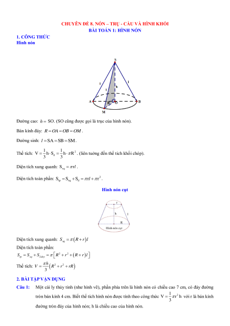 Chuyên đề 8. Nón trụ cầu và hình khối