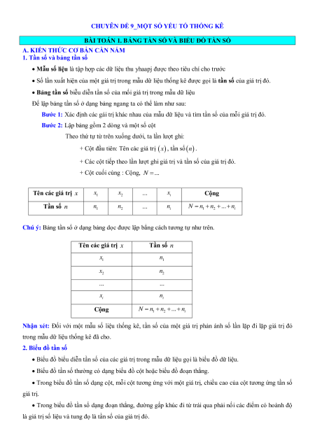 CHUYÊN ĐỀ 9_MỘT SỐ YẾU TỐ THỐNG KÊ