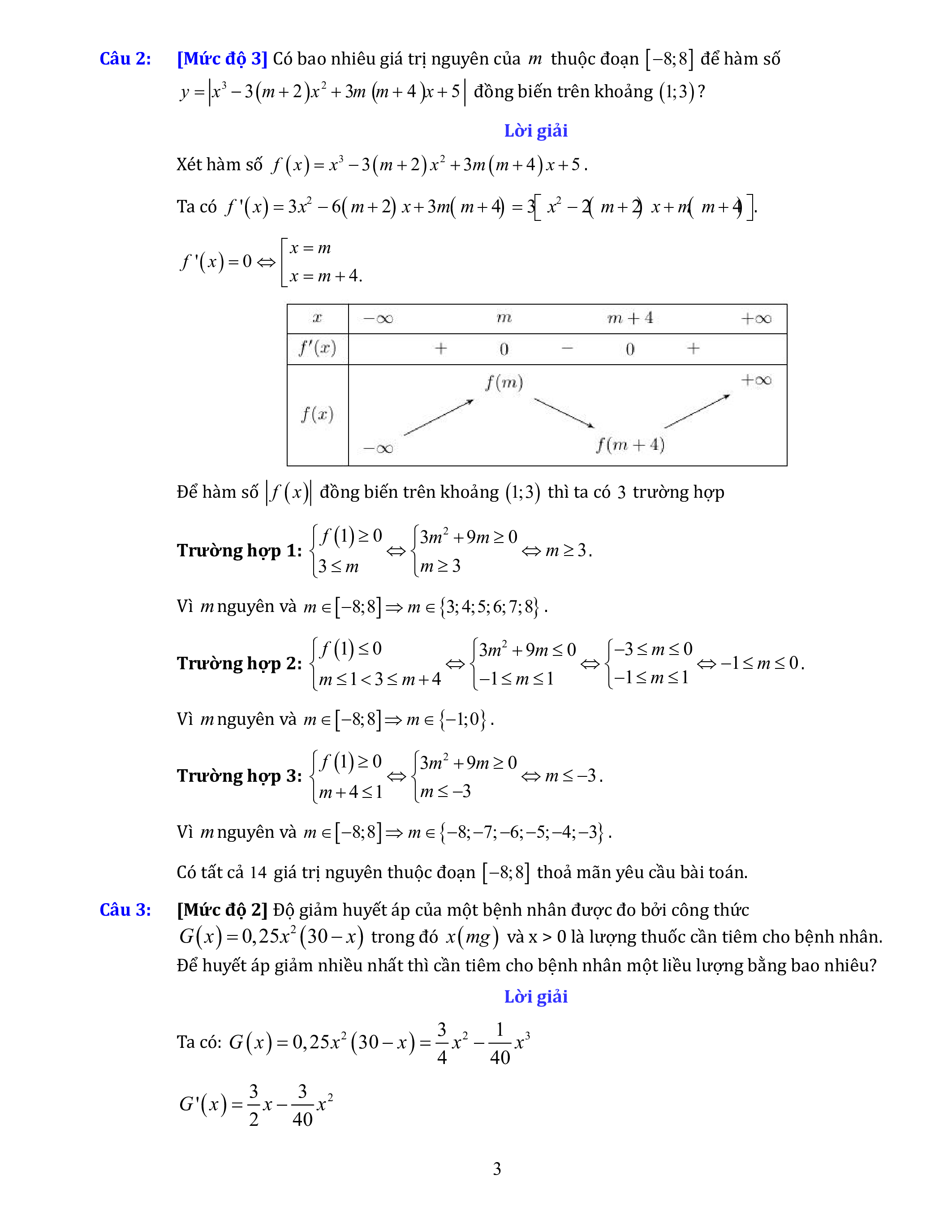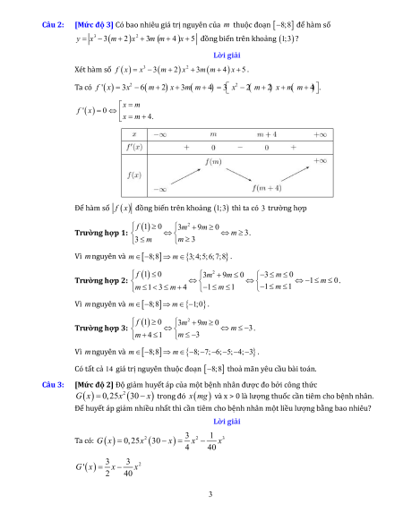Câu 2: [Mức độ 3] Có bao nhiêu giá trị nguyên của m thuộc đoạn 8;8 để hàm số 3