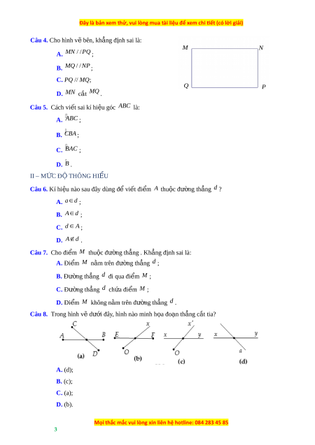 Câu 8. Trong hình v d i đây, hình nào minh h a đo n th ng c t tia? ẽ ướ ọ ạ ẳ ắ