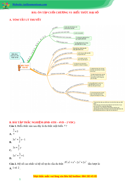 Website: tailieumontoan.com BÀI: ÔN T P Ậ CU I Ố CHƯ N Ơ G VI- BI U Ể TH C Ứ Đ I Ạ SỐ A. TÓM T T Ắ LÝ THUY T Ế B. BÀI T P Ậ TR C Ắ NGHI M