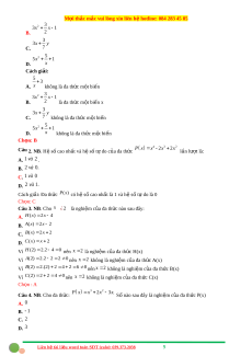 P x x x x P x Câu 4. Cho đa th c ứ : 3 2 2 3 . S nà ố o sau đây là nghi m ệ c a ủ đa th c ứ A. 0 B. 1 C. 2 D. 3 2 3 3 3 2 F x Câu 5. Cho đa th c ứ F(x) 3