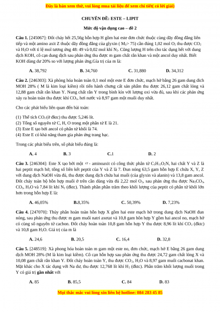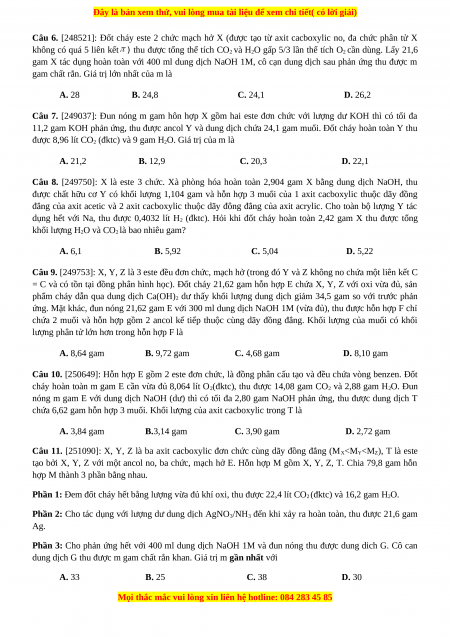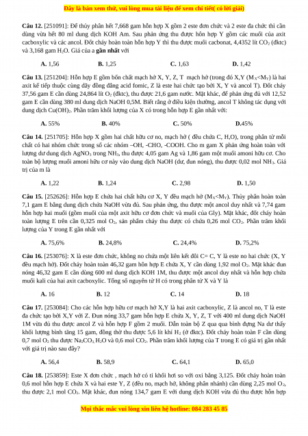 Câu 18. [253859]: Este X đơn chức , mạch hở có tỉ khối hơi so với oxi bằng 3,125. Đốt cháy hoàn toàn