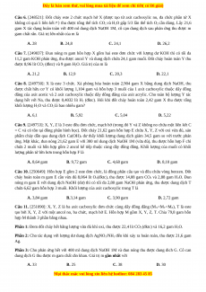 Câu 14. [251705]: Hỗn hợp X gồm hai chất hữu cơ no, mạch hở ( đều chứa C, H,O), trong phân tử mỗi