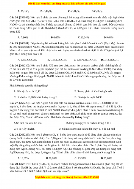 Câu 23. [259599]: Cho hỗn hợp X gồm 2 este đơn chức, mạch hở Y và Z (Z có nhiều hơn Y một nguyên