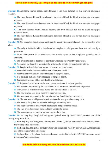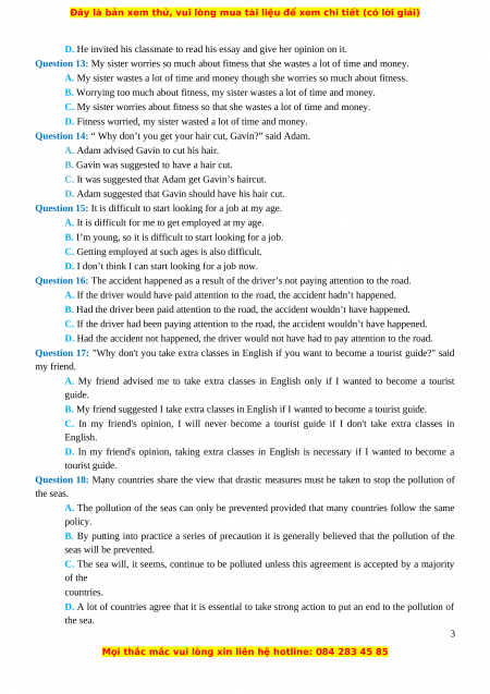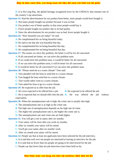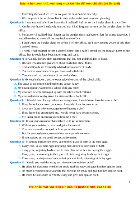 Đây là bản xem thử, vui lòng mua tài liệu để xem chi tiết (có lời giải)