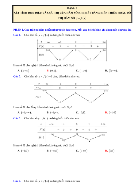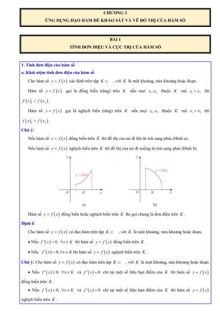 TÍNH ĐƠN ĐIỆU VÀ CỰC TRỊ CỦA HÀM SỐ