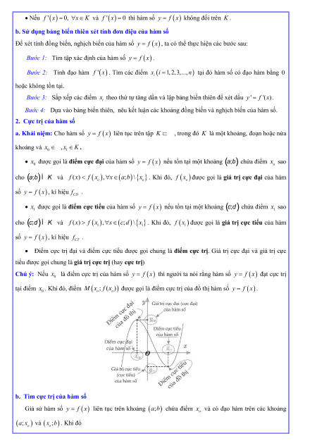 Chú ý: Cho hàm số y f x có đạo hàm trên tập K , với K là một khoảng, nửa khoảng hoặc đoạn.