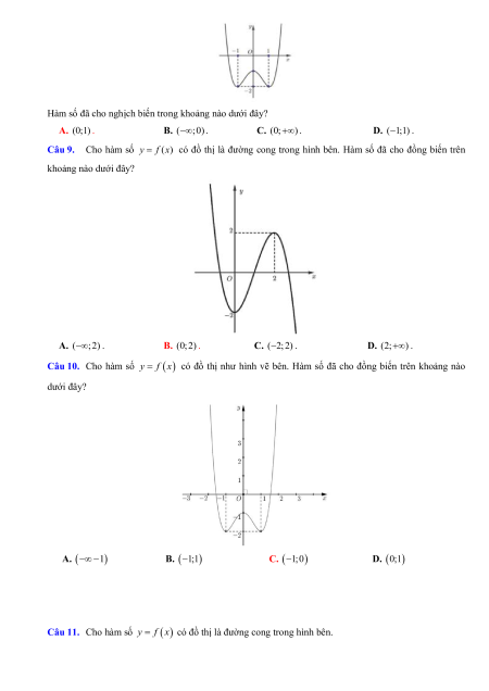 Hàm số y f x gọi là đồng biến (tăng) trên K nếu mọi x , x thuộc K mà x x thì 1 2 1 2