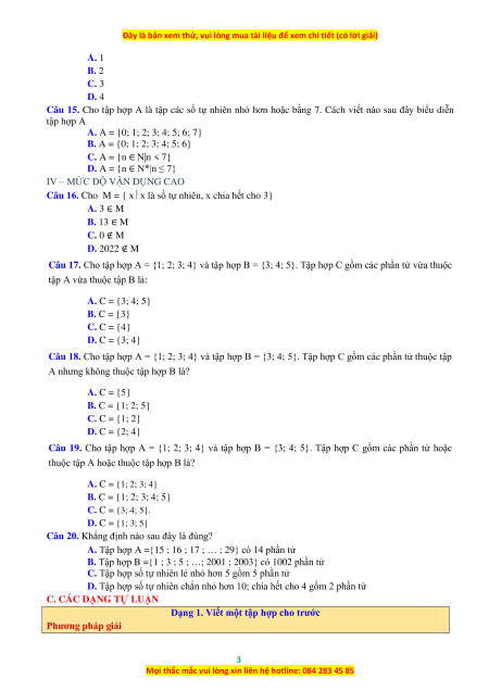 Dạng 1. Viết một tập hợp cho trước Phương pháp giải 3