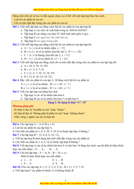 Dạng 2. Sử dụng kí hiệu “∈”, “∉” Phương pháp giải