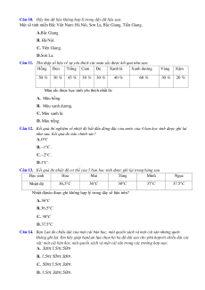 Câu 12. Kết quả thí nghiệm về nhiệt độ bắt đầu đông đặc của nước của 4 bạn học sinh được ghi lại