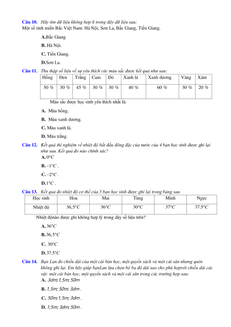Câu 10. Hãy tìm dữ liệu không hợp lí trong dãy dữ liệu sau: