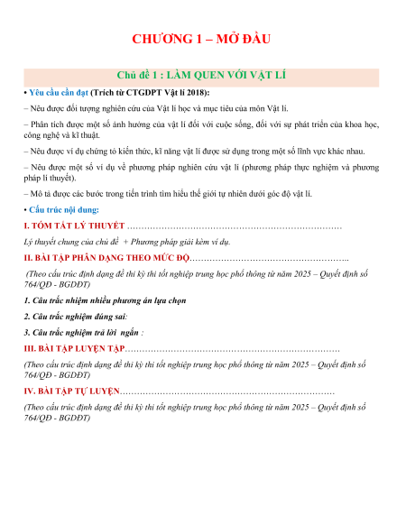 Chủ đề 1 : LÀM QUEN VỚI VẬT LÍ