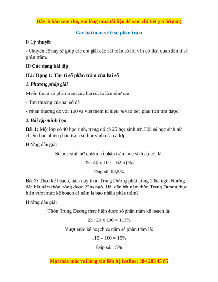 - Chuyên đề này sẽ giúp các em giải các bài toán có lời văn có liên quan đến tỉ số phần trăm.