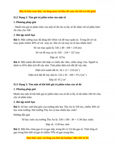 II.2/ Dạng 2: Tìm giá trị phần trăm của một số