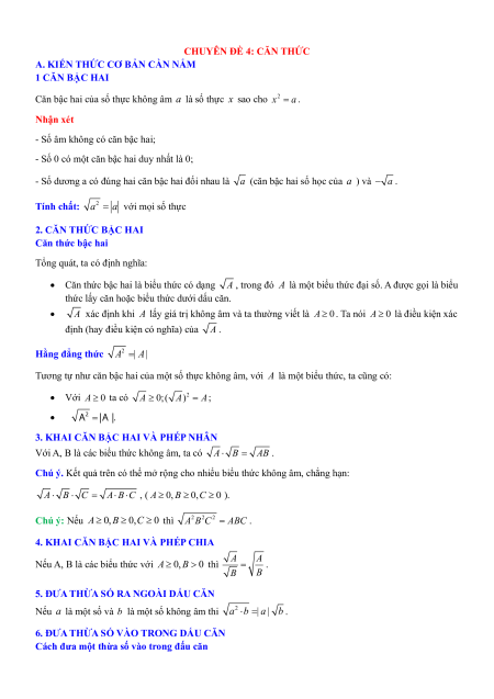 CHUYÊN ĐỀ 4: CĂN THỨC