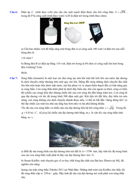 Câu 7: Sóng thần (tsunami) là một loạt các đợt sóng tạo nên khi một thể tích lớn của nước đại dương