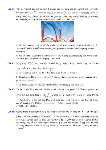 Câu 3: Vận tốc lăn v (tính bằng m / s ) của một vật thể nặng m (tính bằng kg ) được tác động một lực