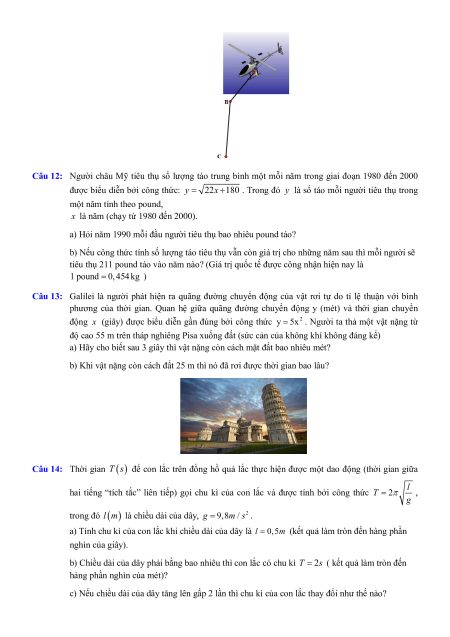 Câu 5: Thời g̣ian rơi t tính theo giây của một vật được thả rơi tự do từ độ cao h(m) cho đến khi chạm đất thoả mãn hệ thức 2 h 5t .