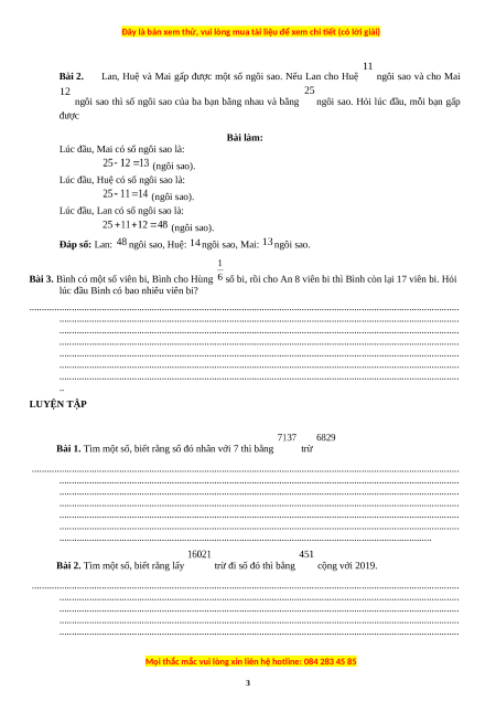 Bài 3. Tìm một số, biết rằng lấy số đó cộng với