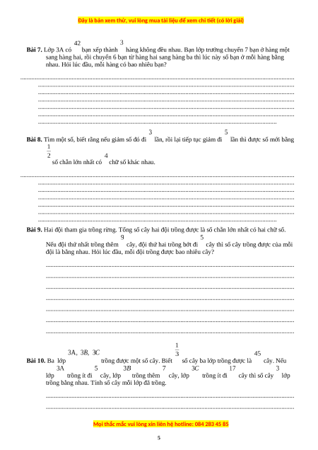 Bài 10. Ba lớp trồng được một số cây. Biết số cây ba lớp trồng được là cây. Nếu