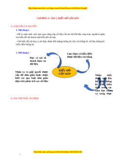 CHƯƠNG 4 - BÀI 2. BI U Ể Đ C Ồ T Ộ KÉP A. TÓM T T Ắ LÝ THUY T Ế 1. N i ộ dung 1 - Để so sánh m t ộ cách tr c ự quan t ng ừ c p ặ s ố li u ệ c a ủ hai b ộ d ữ li u ệ cùng lo i ạ , ngư i ờ ta ghép hai bi u đ ể c ồ ột thành m t ộ bi u đ ể c ồ ột kép. - V i ớ biểu đ ồ c t ộ kép, ta s t ẽ h y ấ đư c ợ đ i ố tư ng ợ th ng ố kê, tiêu chí th ng ố kê, s ố li u ệ th ng ố kê, biểu diễn th ng kê ố . 2. N i ộ dung 2 Lựa chọn và bi u ể di n ễ