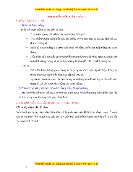 ệ otline: 084 283 45 85 BÀI 3: BI U Ể Đ Đ Ồ O N Ạ TH N Ẳ G A. TÓM T T Ắ LÝ THUY T Ế