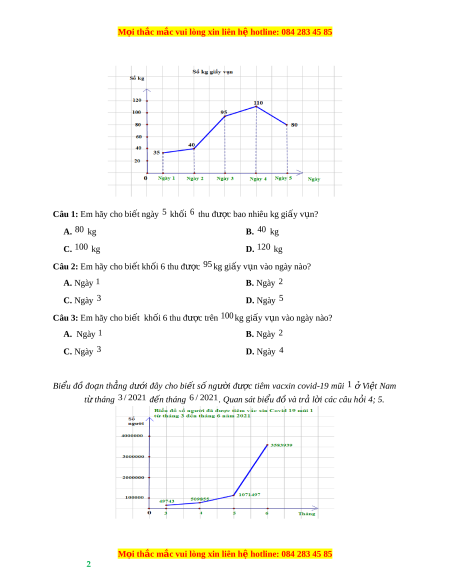 Câu 2: Em hãy cho biết khối 6 thu được 95 kg giấy v n ụ vào ngày nào? A. Ngày 1 B. Ngày 2 C. Ngày 3 D. Ngày 5