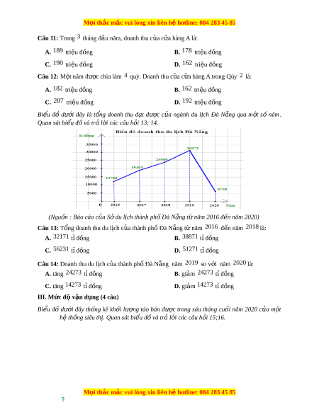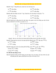 Câu 14: Doanh thu du l ch c a ị ủ thành ph ố Đà N ng năm ẵ