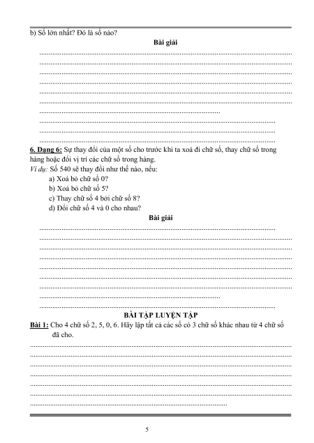 5. Dạng 5: Từ một số có nhiều chữ số. Hãy xoá đi n chữ số để được một số lớn nhất