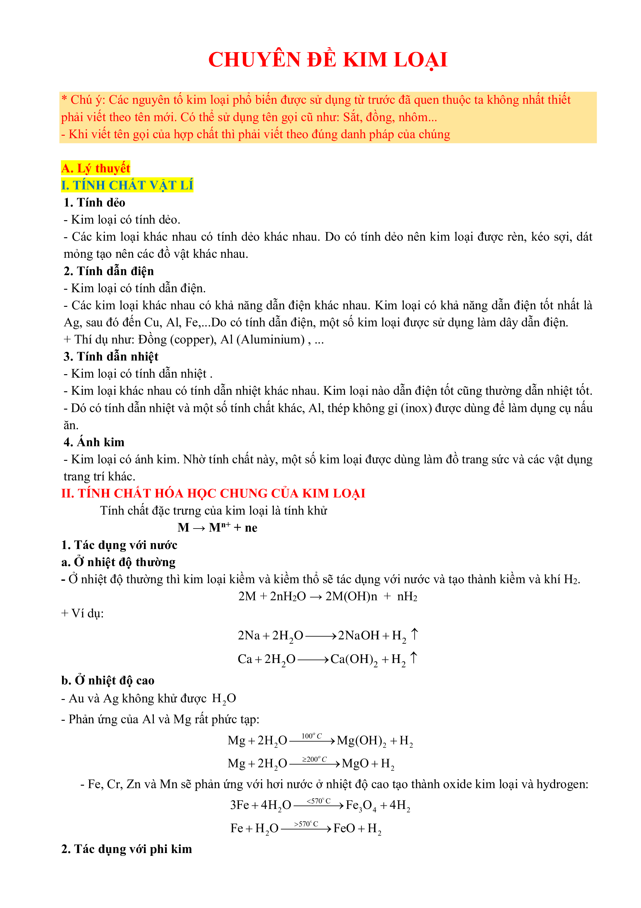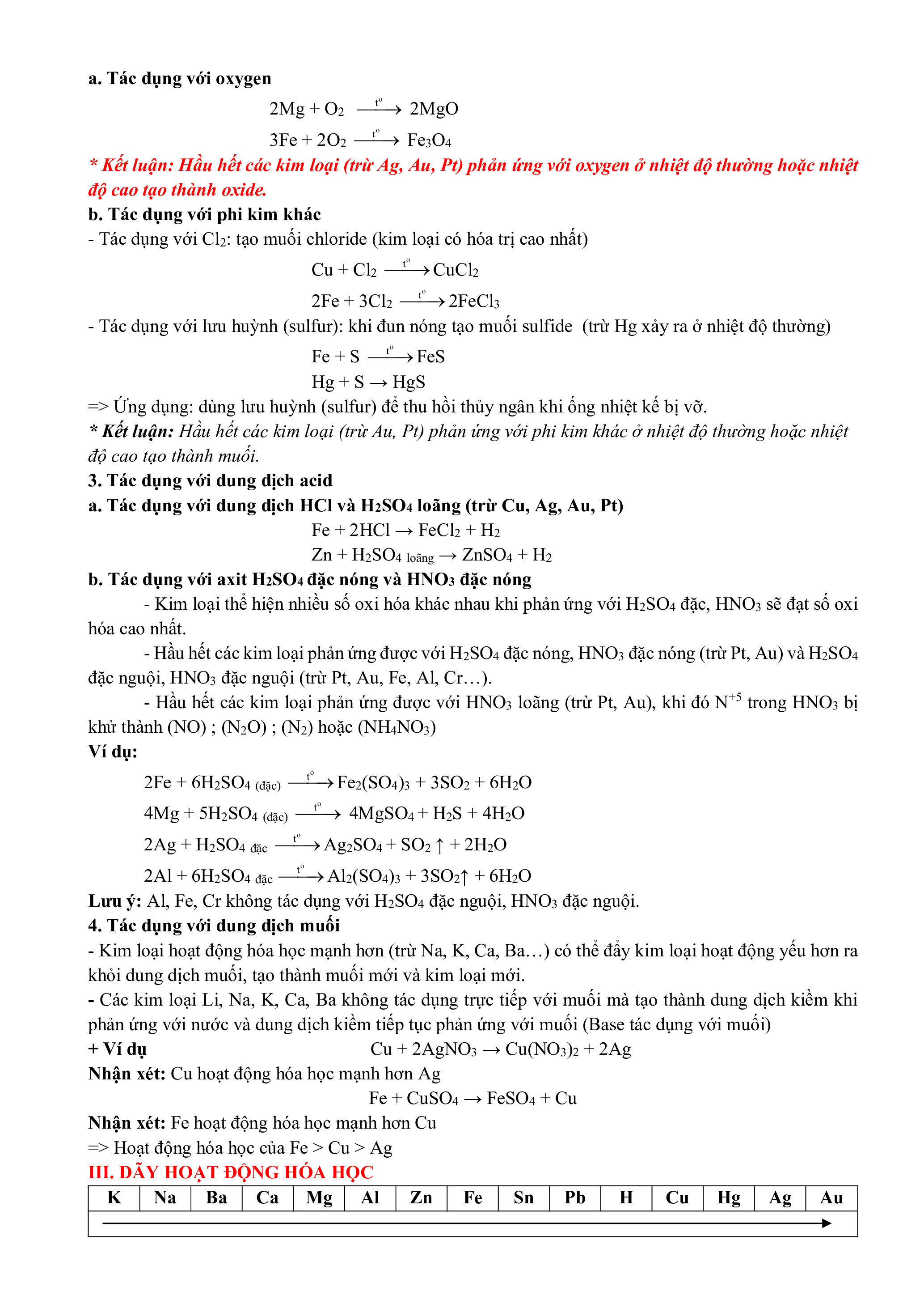 II. TÍNH CHẤT HÓA HỌC CHUNG CỦA KIM LOẠI