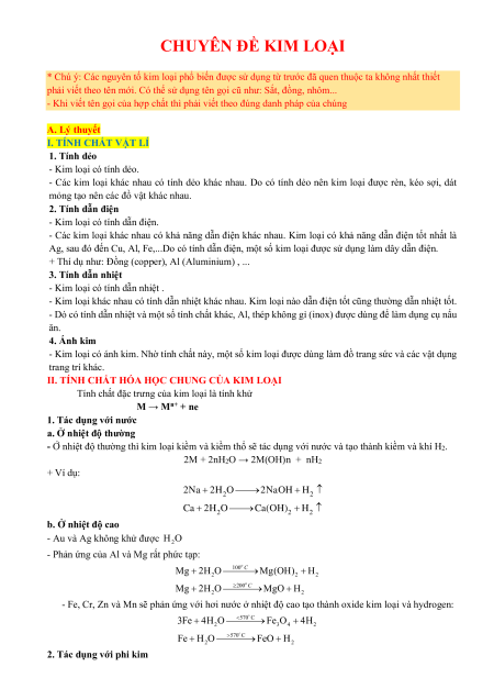 - Khi viết tên gọi của hợp chất thì phải viết theo đúng danh pháp của chúng A. Lý thuyết I. TÍNH CHẤT VẬT LÍ 1. Tính dẻo - Kim loại có tính dẻo.