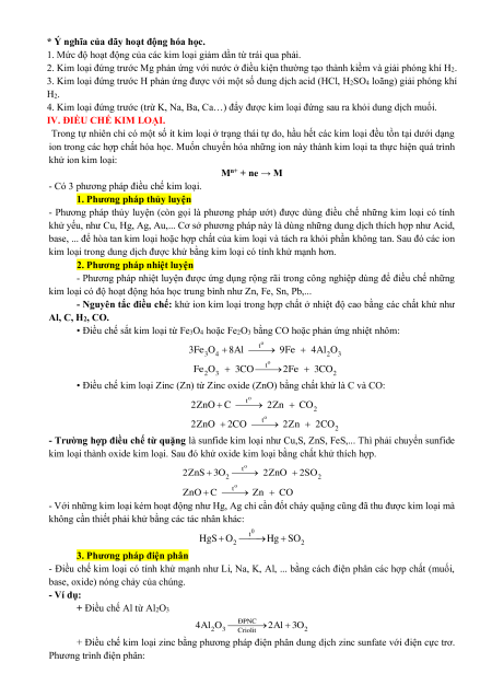 IV. ĐIỀU CHẾ KIM LOẠI.