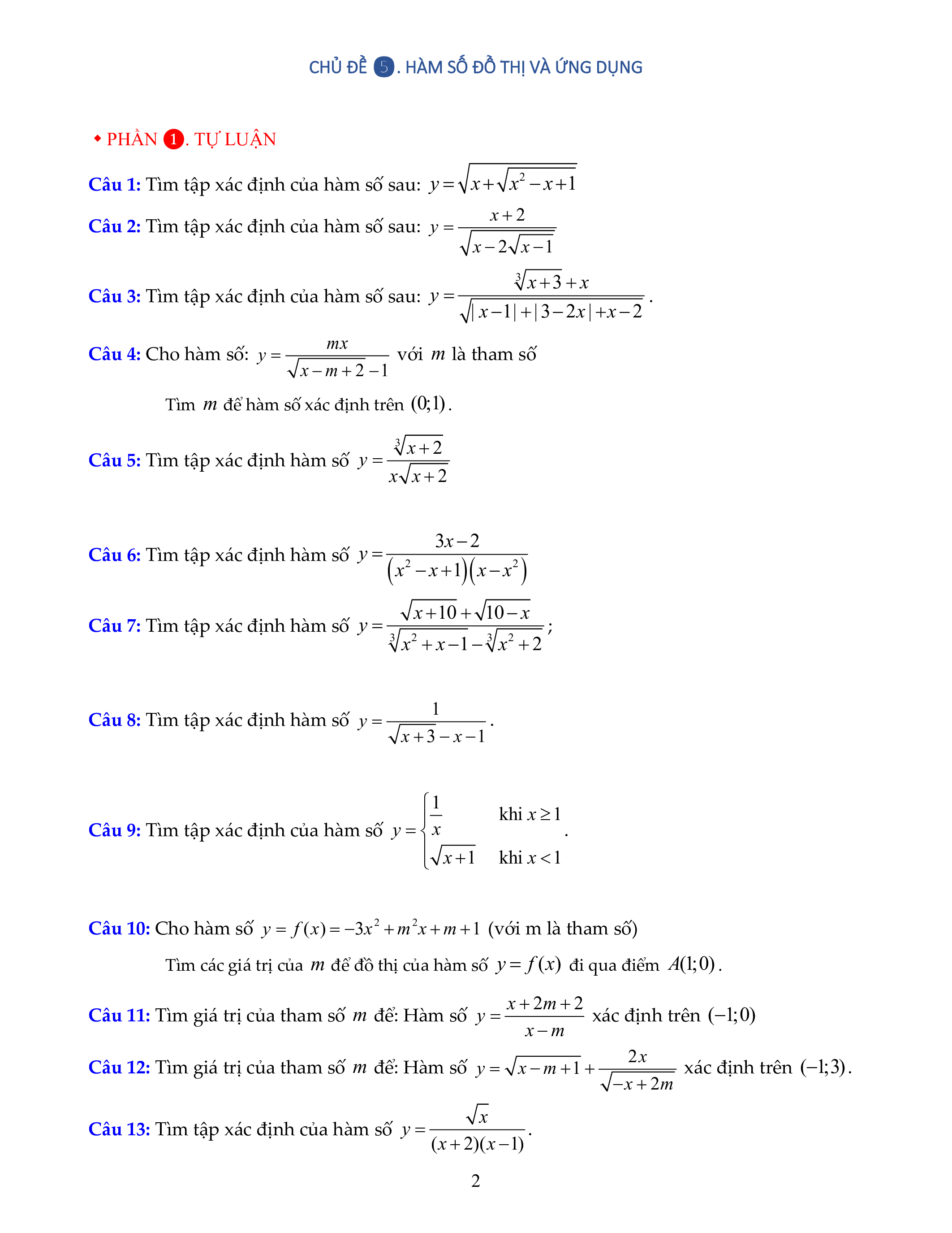 Câu 1: Tìm tập xác định của hàm số sau: 2