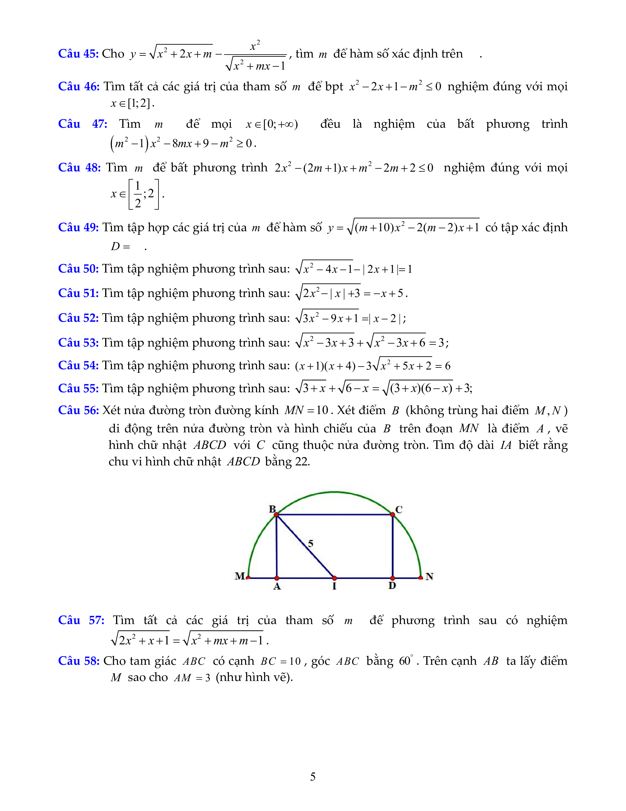 Câu 29: Tìm m để bất phương trình sau nghiệm đúng với mọi x : 2