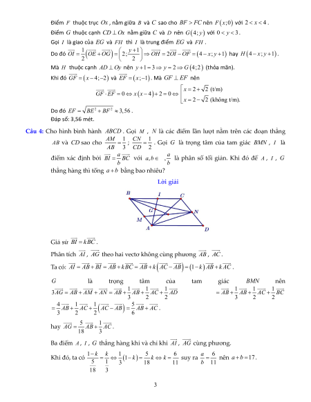 Điểm F thuộc trục Ox , nằm giữa B và C sao cho BF FC nên F x;0 với 2 x 4 .