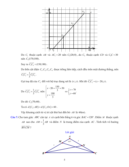 A 0;0), B(200;0),C(200;180), D(0;180) . Gọi vị trí các cột