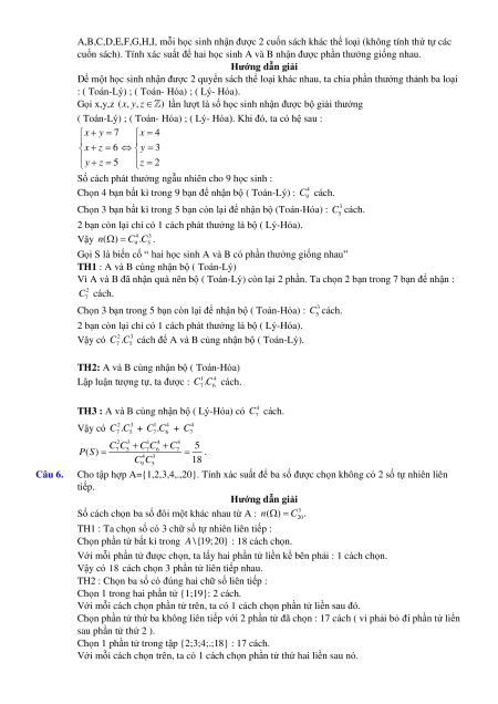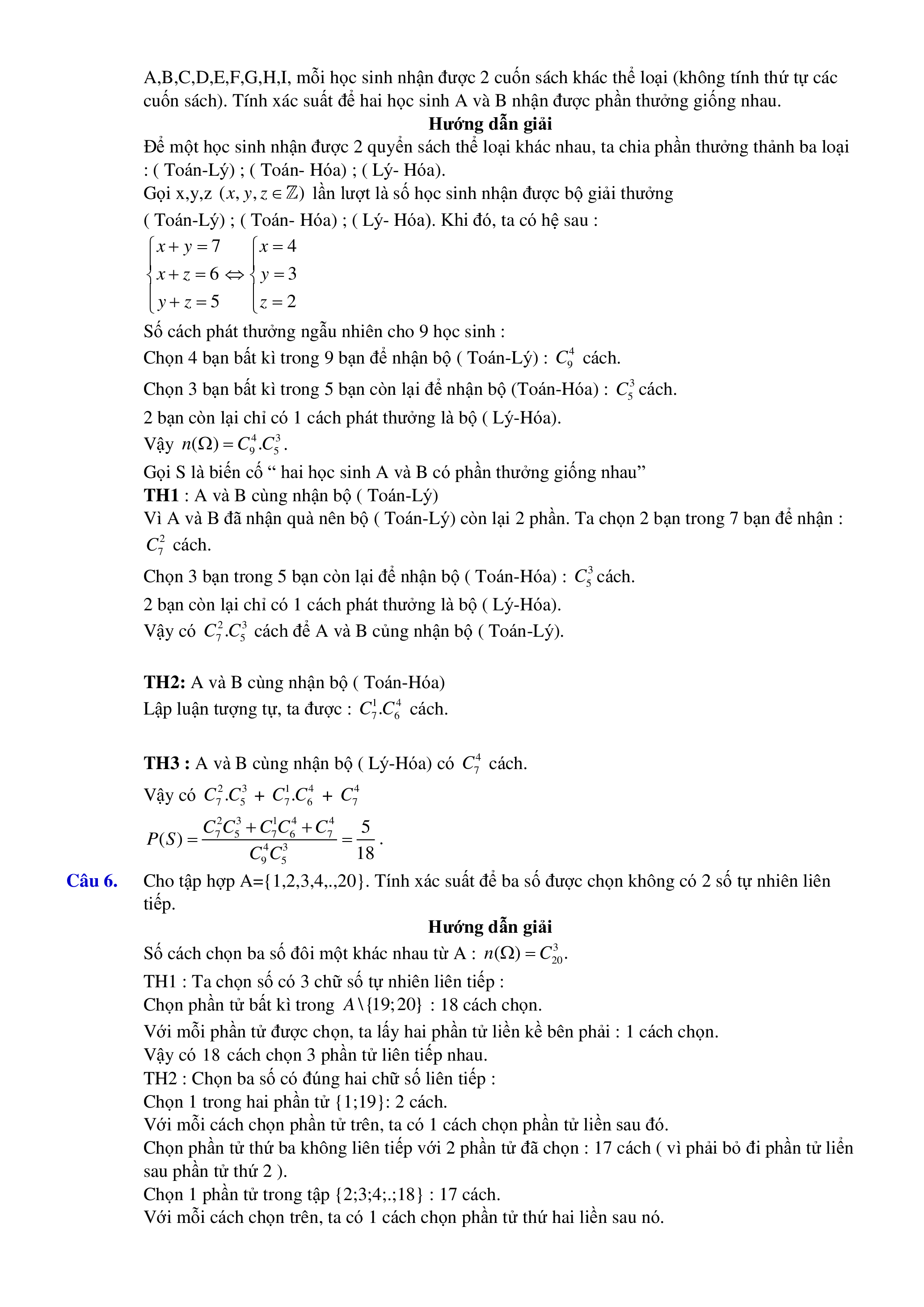 C C + C C + C 5 7 5 7 6 7 P(S) = = . 4 3 C C 18 9 5 Câu 6.