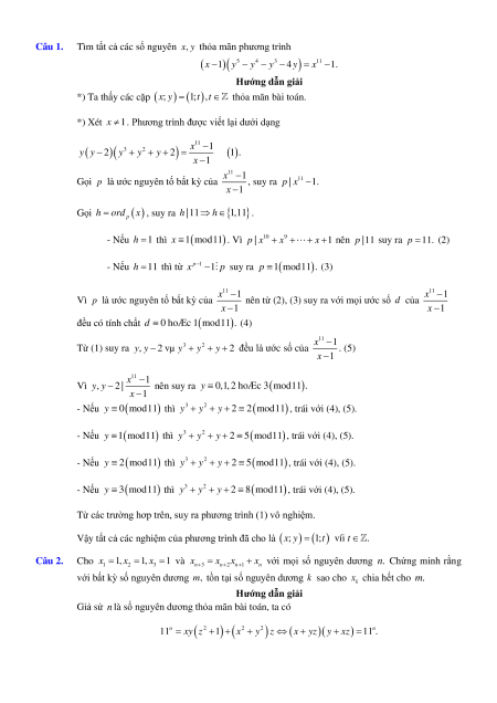 Gọi p là ước nguyên tố bất kỳ của , suy ra 11 p | x −1. x −1 Gọi h = ord