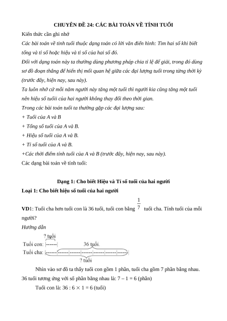 CHUYÊN ĐỀ 24: CÁC BÀI TOÁN VỀ TÍNH TUỔI Kiến thức cần ghi nhớ