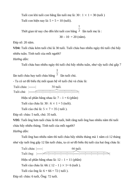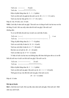 Bài 2. Tuổi con bằng lần tuổi mẹ. Mẹ hơn con 24 tuổi. Hỏi mỗi người bao nhiêu