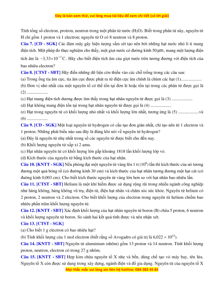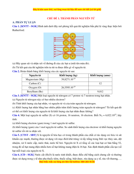 CHỦ ĐỀ 1. THÀNH PHẦN NGUYÊN TỬ A. PHẦN TỰ LUẬN