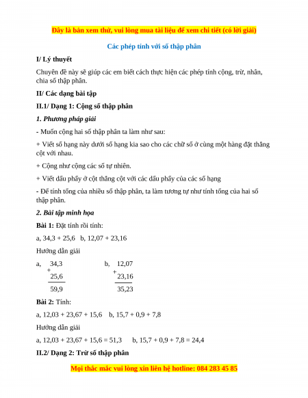 - Tailieugiaovien.com.vn giới thiệu Chuyên đề Các phép toán với số thập phân ôn luyện môn Toán lớp 5 cực hay năm 2022 - 2023 nhằm giúp Giáo viên có thêm tài liệu tham khảo chuyên đề luyện thi Toán lớp 5.