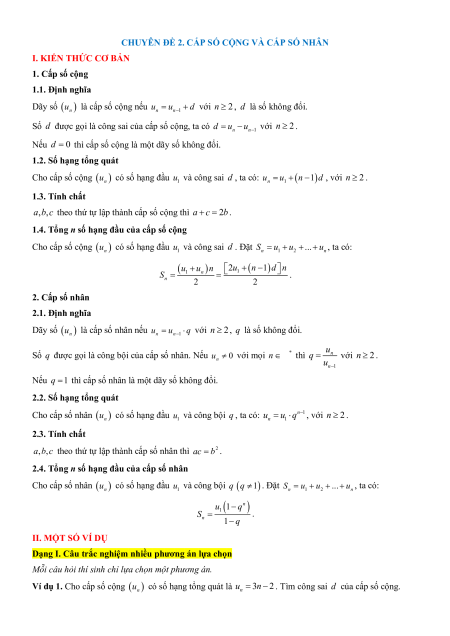 CHUYÊN ĐỀ 2. CẤP SỐ CỘNG VÀ CẤP SỐ NHÂN I. KIẾN THỨC CƠ BẢN 1. Cấp số cộng 1.1. Định nghĩa