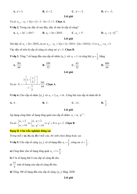 Vậy dãy số trên là cấp số cộng có công sai d 3. Chọn B.