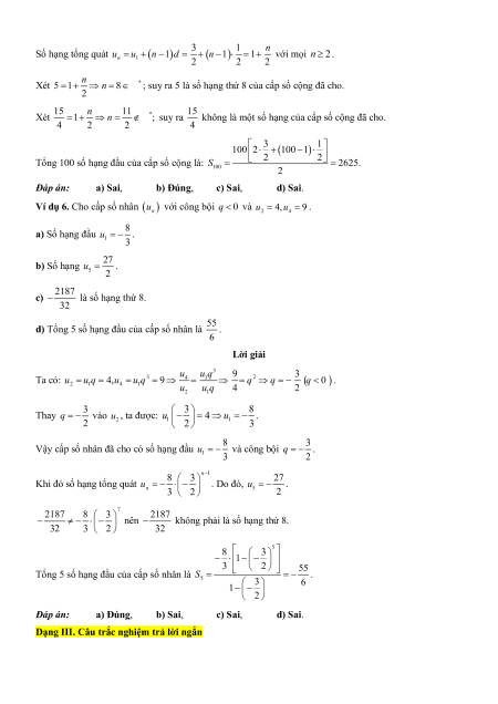 d) Tổng 5 số hạng đầu của cấp số nhân là 55 . 6 Lời giải 3 Ta có: 3 u u q 9 3 4 1 2
