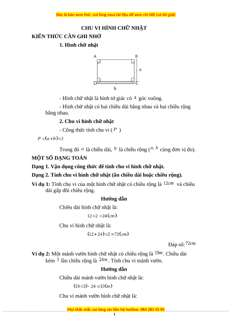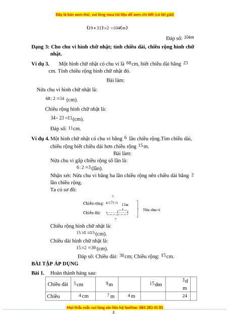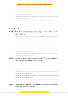 Đáp số: Chiều dài: cm; Chiều rộng: cm. BÀI TẬP ÁP DỤNG