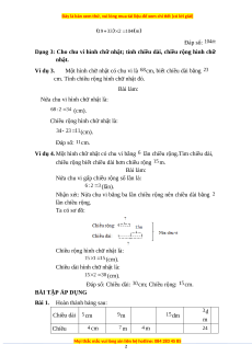 Dạng 3: Cho chu vi hình chữ nhật; tính chiều dài, chiều rộng hình chữ nhật. Ví dụ 3.