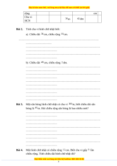 Bài 4. Một hình chữ nhật có chiều dài cm, chiều rộng bằng chiều